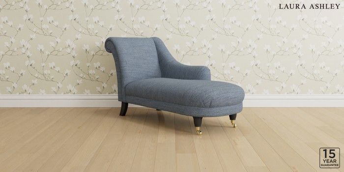 6.12.1 Buy Gloucester by Laura Ashley Chaise Longue Right Hand Harley Seaspray Blue Low Brass Castor - Black from the Next UK online shop Click here to use our accessible website