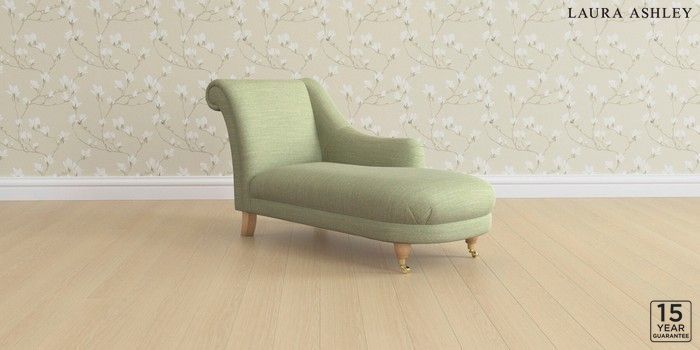 6.12.1 Buy Gloucester by Laura Ashley Chaise Longue Right Hand Kinsham Hedgerow Green Low Brass Castor - Light Oak from the Next UK online shop Click here to use our accessible website