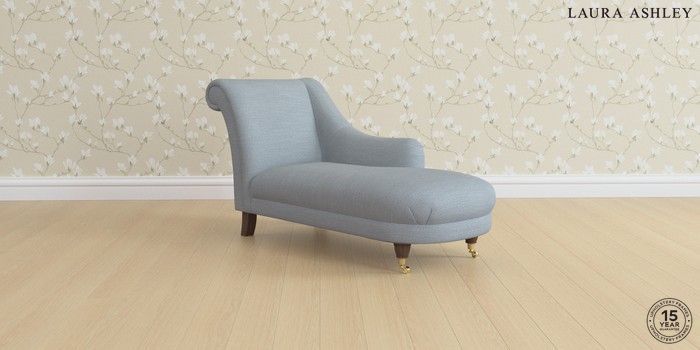 6.12.1 Buy Gloucester by Laura Ashley Chaise Longue Right Hand Kinsham Seaspray Blue Low Brass Castor - Chestnut from the Next UK online shop Click here to use our accessible website