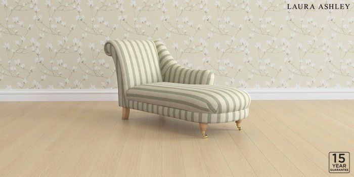 6.12.1 Buy Gloucester by Laura Ashley Chaise Longue Right Hand Kinsham Stripe Hedgerow Green Low Brass Castor - Light Oak from the Next UK online shop Click here to use our accessible website