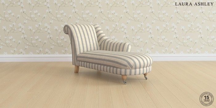 6.12.1 Buy Gloucester by Laura Ashley Chaise Longue Right Hand Kinsham Stripe Seaspray Blue Low Chrome Castor - Light Oak from the Next UK online shop Click here to use our accessible website