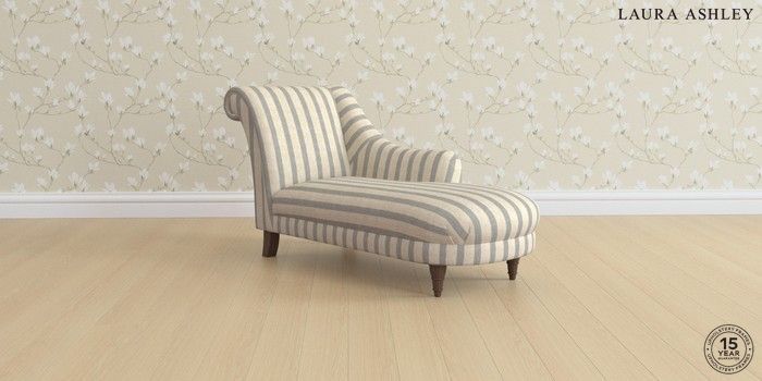 6.12.1 Buy Gloucester by Laura Ashley Chaise Longue Right Hand Kinsham Stripe Seaspray Blue Low Turned - Chestnut from the Next UK online shop Click here to use our accessible website