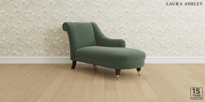 6.12.1 Buy Gloucester by Laura Ashley Chaise Longue Right Hand Nantmor Fern Green Low Brass Castor - Black from the Next UK online shop Click here to use our accessible website