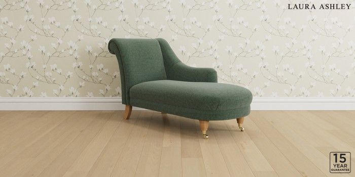 6.12.1 Buy Gloucester by Laura Ashley Chaise Longue Right Hand Nantmor Fern Green Low Brass Castor - Light Oak from the Next UK online shop Click here to use our accessible website