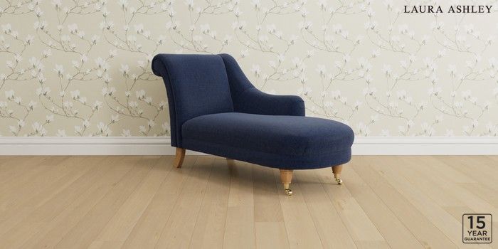 6.12.1 Buy Gloucester by Laura Ashley Chaise Longue Right Hand Nantmor Midnight Navy Low Brass Castor - Light Oak from the Next UK online shop Click here to use our accessible website