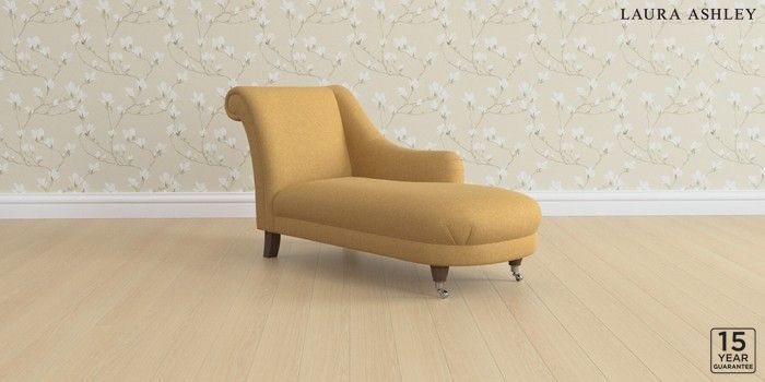 6.12.1 Buy Gloucester by Laura Ashley Chaise Longue Right Hand Peyton Ochre Yellow Low Chrome Castor - Chestnut from the Next UK online shop Click here to use our accessible website