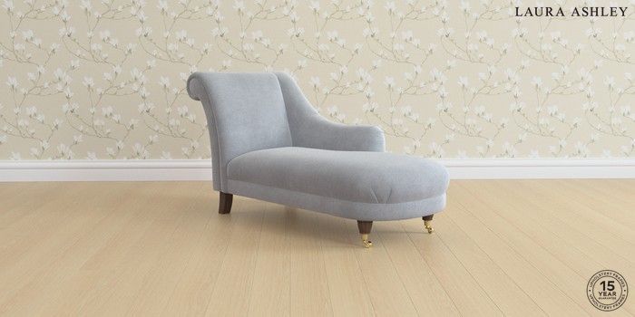6.12.1 Buy Gloucester by Laura Ashley Chaise Longue Right Hand Peyton Powder Blue Low Brass Castor - Chestnut from the Next UK online shop Click here to use our accessible website