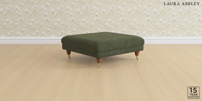 6.12.1 Buy Gloucester by Laura Ashley Extra Large Footstool Alwyn Velvet Ivy Green Low Brass Castor - Teak from the Next UK online shop Click here to use our accessible website