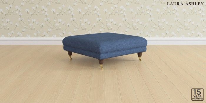 6.12.1 Buy Gloucester by Laura Ashley Extra Large Footstool Bainton Midnight Navy Low Brass Castor - Chestnut from the Next UK online shop Click here to use our accessible website