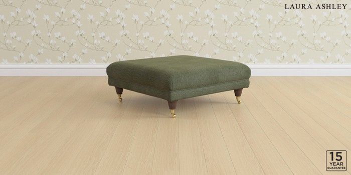 6.12.1 Buy Gloucester by Laura Ashley Extra Large Footstool Edwin Chenille Hedgerow Green Low Brass Castor - Chestnut from the Next UK online shop Click here to use our accessible website