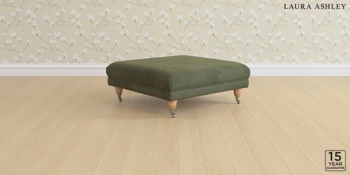 6.12.1 Buy Gloucester by Laura Ashley Extra Large Footstool Edwin Chenille Hedgerow Green Low Chrome Castor - Light Oak from the Next UK online shop Click here to use our accessible website