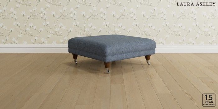 6.12.1 Buy Gloucester by Laura Ashley Extra Large Footstool Harley Seaspray Blue Low Chrome Castor - Teak from the Next UK online shop Click here to use our accessible website