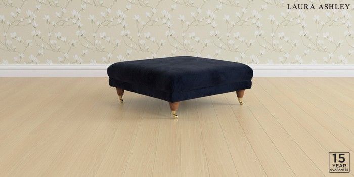 6.12.1 Buy Gloucester by Laura Ashley Extra Large Footstool Orla Midnight Navy Low Brass Castor - Teak from the Next UK online shop Click here to use our accessible website