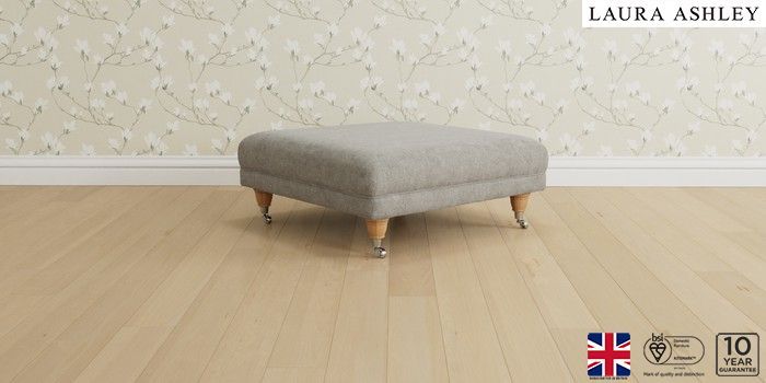 6.11.4 Buy Gloucester by Laura Ashley Extra Large Footstool Orla Pale Steel Grey Low Chrome Castor - Light Oak from the Next UK online shop Click here to use our accessible website