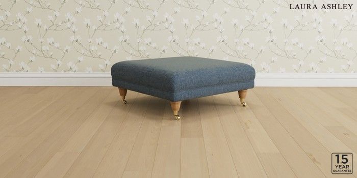 6.12.1 Buy Gloucester by Laura Ashley Extra Large Footstool Orla Seaspray Blue Low Brass Castor - Light Oak from the Next UK online shop Click here to use our accessible website