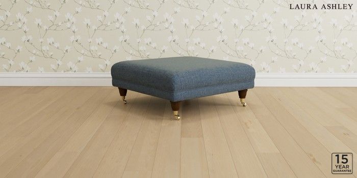 6.12.1 Buy Gloucester by Laura Ashley Extra Large Footstool Orla Seaspray Blue Low Brass Castor - Teak from the Next UK online shop Click here to use our accessible website