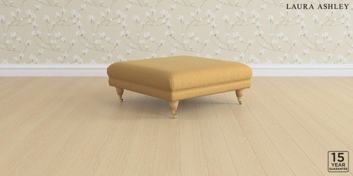 6.12.1 Buy Gloucester by Laura Ashley Extra Large Footstool Peyton Ochre Yellow Low Brass Castor - Light Oak from the Next UK online shop Click here to use our accessible website
