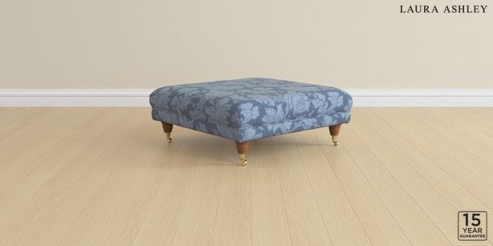 6.12.1 Buy Gloucester by Laura Ashley Extra Large Footstool Tamara Dusky Seaspray Blue Low Brass Castor - Teak from the Next UK online shop Click here to use our accessible website