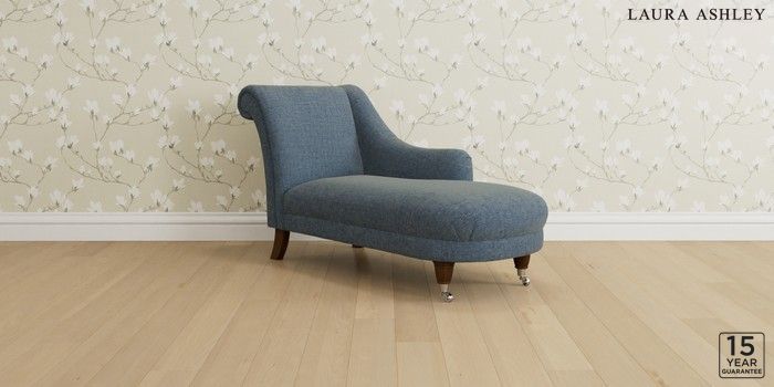 6.12.1 Buy Gloucester by Laura Ashley Chaise Longue Right Hand Orla Seaspray Blue Low Chrome Castor - Teak from the Next UK online shop Click here to use our accessible website