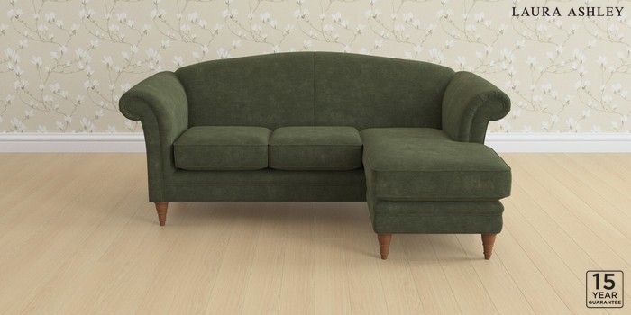6.12.1 Buy Gloucester by Laura Ashley Medium Sofa Chaise - Universal Alwyn Velvet Ivy Green Low Turned - Teak from the Next UK online shop Click here to use our accessible website