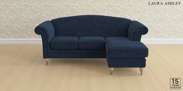 6.12.1 Buy Gloucester by Laura Ashley Medium Sofa Chaise - Universal Alwyn Velvet Midnight Navy Low Chrome Castor - Light Oak from the Next UK online shop Click here to use our accessible website