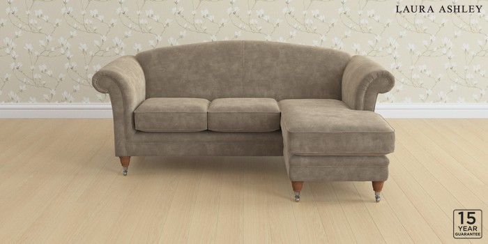 6.12.1 Buy Gloucester by Laura Ashley Medium Sofa Chaise - Universal Alwyn Velvet Truffle Natural Low Chrome Castor - Teak from the Next UK online shop Click here to use our accessible website