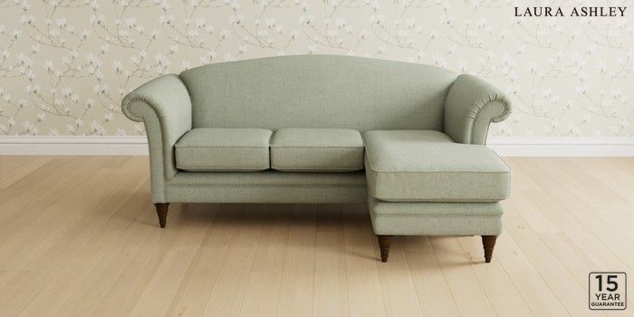 6.12.13 Buy Gloucester by Laura Ashley Medium Sofa Chaise - Universal Anneliese Sage Green Low Turned - Chestnut from the Next UK online shop Click here to use our accessible website