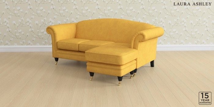 6.12.1 Buy Gloucester by Laura Ashley Medium Sofa Chaise - Universal Bainton Ochre Yellow Low Brass Castor - Black from the Next UK online shop Click here to use our accessible website