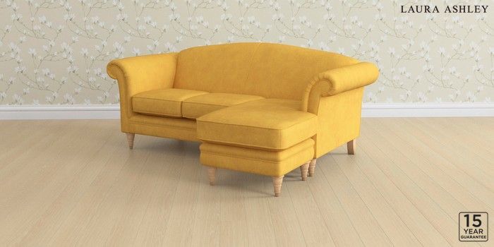 6.12.13 Buy Gloucester by Laura Ashley Medium Sofa Chaise - Universal Bainton Ochre Yellow Low Turned - Light Oak from the Next UK online shop Click here to use our accessible website