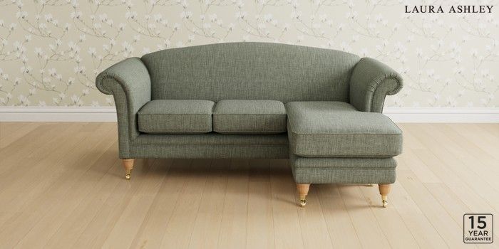 6.12.13 Buy Gloucester by Laura Ashley Medium Sofa Chaise - Universal Bainton Sage Green Low Brass Castor - Light Oak from the Next UK online shop Click here to use our accessible website