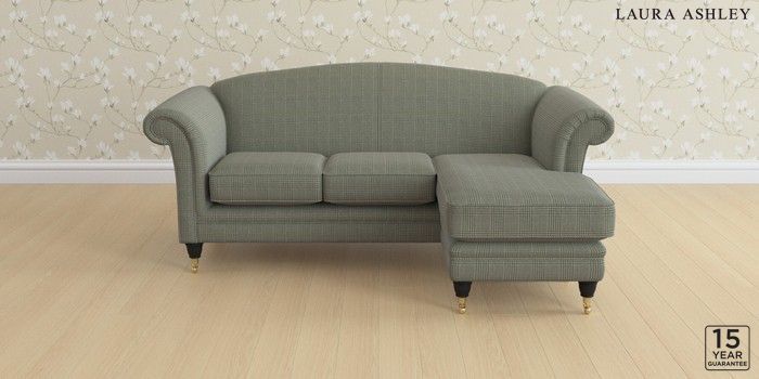 6.12.13 Buy Gloucester by Laura Ashley Medium Sofa Chaise - Universal Birchgrove Check Olive Green Low Brass Castor - Black from the Next UK online shop Click here to use our accessible website