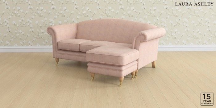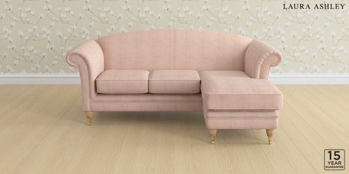 6.12.1 Buy Gloucester by Laura Ashley Medium Sofa Chaise - Universal Edwin Chenille Blush Pink Low Brass Castor - Light Oak from the Next UK online shop Click here to use our accessible website
