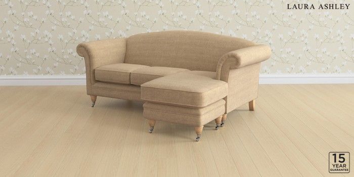 6.12.1 Buy Gloucester by Laura Ashley Medium Sofa Chaise - Universal Edwin Chenille Gold Natural Low Chrome Castor - Light Oak from the Next UK online shop Click here to use our accessible website