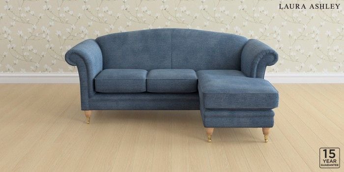 6.12.1 Buy Gloucester by Laura Ashley Medium Sofa Chaise - Universal Edwin Chenille Seaspray Blue Low Brass Castor - Light Oak from the Next UK online shop Click here to use our accessible website