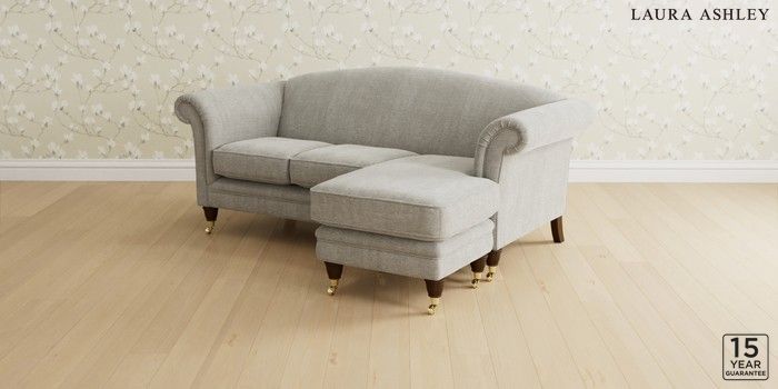 6.12.1 Buy Gloucester by Laura Ashley Medium Sofa Chaise - Universal Edwin Chenille Silver Grey Low Brass Castor - Chestnut from the Next UK online shop Click here to use our accessible website