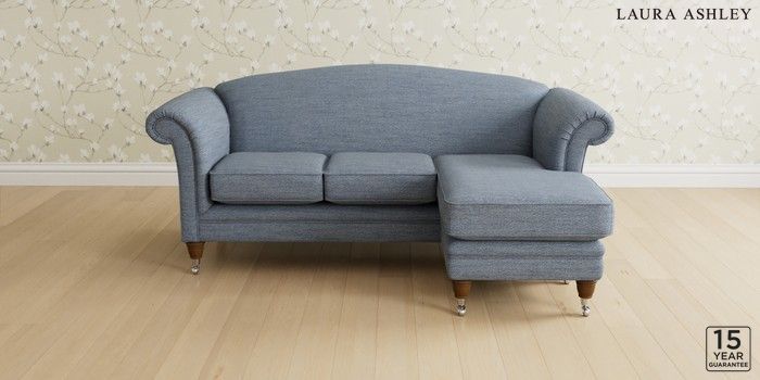 6.12.1 Buy Gloucester by Laura Ashley Medium Sofa Chaise - Universal Harley Seaspray Blue Low Chrome Castor - Teak from the Next UK online shop Click here to use our accessible website