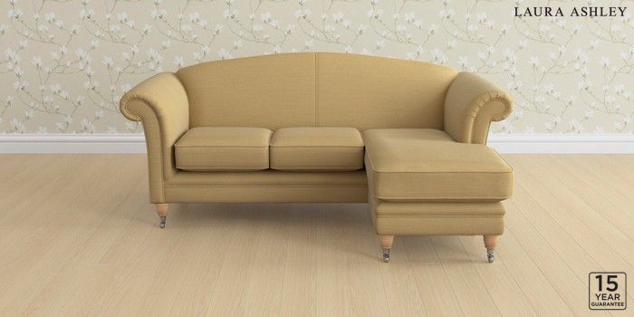 6.12.13 Buy Gloucester by Laura Ashley Medium Sofa Chaise - Universal Kinsham Ochre Yellow Low Chrome Castor - Light Oak from the Next UK online shop Click here to use our accessible website