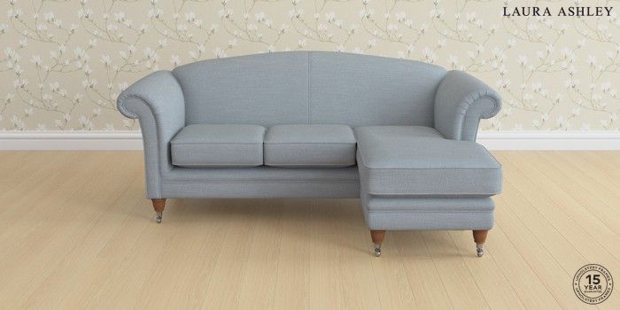 6.12.1 Buy Gloucester by Laura Ashley Medium Sofa Chaise - Universal Kinsham Seaspray Blue Low Chrome Castor - Teak from the Next UK online shop Click here to use our accessible website