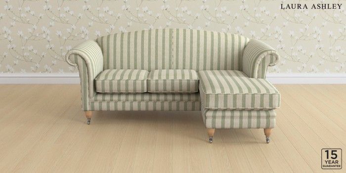6.12.13 Buy Gloucester by Laura Ashley Medium Sofa Chaise - Universal Kinsham Stripe Hedgerow Green Low Chrome Castor - Light Oak from the Next UK online shop Click here to use our accessible website