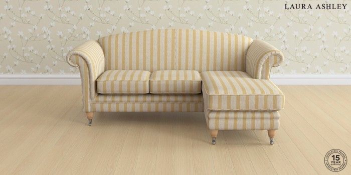 7.0.3 Buy Gloucester by Laura Ashley Medium Sofa Chaise - Universal Kinsham Stripe Ochre Yellow Low Chrome Castor - Light Oak from the Next UK online shop Click here to use our accessible website