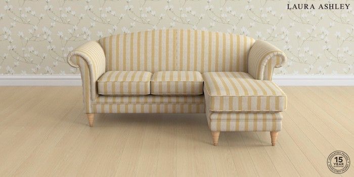 7.0.3 Buy Gloucester by Laura Ashley Medium Sofa Chaise - Universal Kinsham Stripe Ochre Yellow Low Turned - Light Oak from the Next UK online shop Click here to use our accessible website