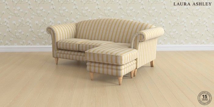 7.3.8 Buy Gloucester by Laura Ashley Medium Sofa Chaise - Universal Kinsham Stripe Ochre Yellow Low Turned - Light Oak from the Next UK online shop