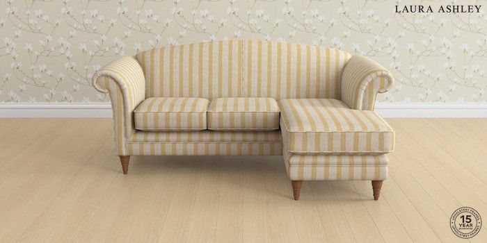 7.0.3 Buy Gloucester by Laura Ashley Medium Sofa Chaise - Universal Kinsham Stripe Ochre Yellow Low Turned - Teak from the Next UK online shop Click here to use our accessible website