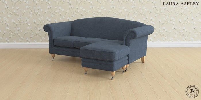 6.12.1 Buy Gloucester by Laura Ashley Medium Sofa Chaise - Universal Lundar Chenille Navy Blue Low Chrome Castor - Light Oak from the Next UK online shop Click here to use our accessible website