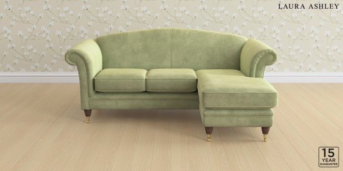 6.12.13 Buy Gloucester by Laura Ashley Medium Sofa Chaise - Universal Orla Pale Hedgerow Green Low Brass Castor - Chestnut from the Next UK online shop Click here to use our accessible website