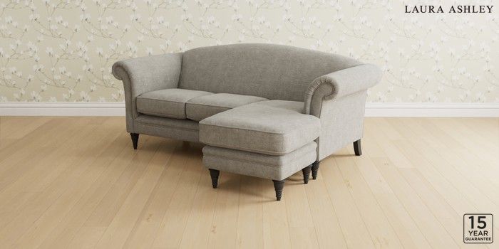 6.12.1 Buy Gloucester by Laura Ashley Medium Sofa Chaise - Universal Orla Pale Steel Grey Low Turned - Black from the Next UK online shop Click here to use our accessible website