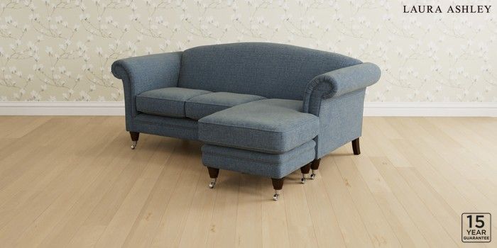 6.12.13 Buy Gloucester by Laura Ashley Medium Sofa Chaise - Universal Orla Seaspray Blue Low Chrome Castor - Chestnut from the Next UK online shop Click here to use our accessible website