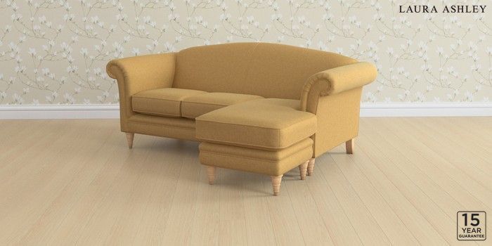 6.12.13 Buy Gloucester by Laura Ashley Medium Sofa Chaise - Universal Peyton Ochre Yellow Low Turned - Light Oak from the Next UK online shop Click here to use our accessible website