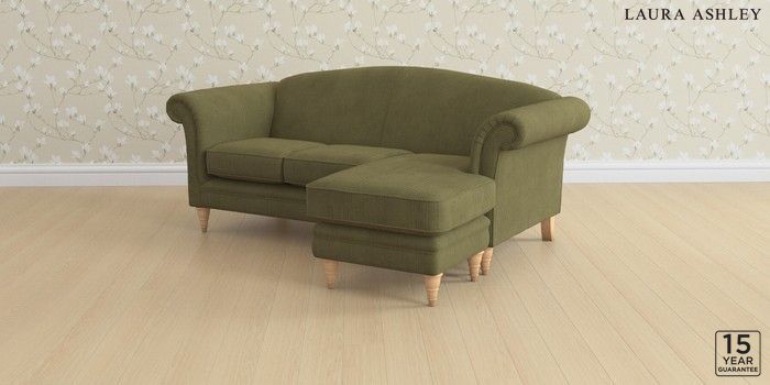 6.12.1 Buy Gloucester by Laura Ashley Medium Sofa Chaise - Universal Sinclair Cord Ivy Green Low Turned - Light Oak from the Next UK online shop Click here to use our accessible website