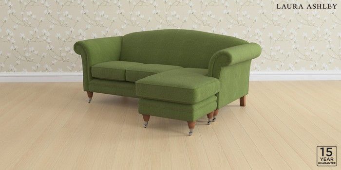 6.12.13 Buy Gloucester by Laura Ashley Medium Sofa Chaise - Universal Tichwell Olive Green Low Chrome Castor - Teak from the Next UK online shop Click here to use our accessible website